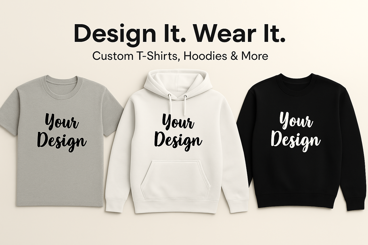 Whether it's a favorite quote, artwork, brand logo, or a personal design, our custom t-shirts, hoodies, and sweatshirts help you stand out in style. From casual wear to promotional merchandise, our products give you the freedom to turn your vision into reality.
